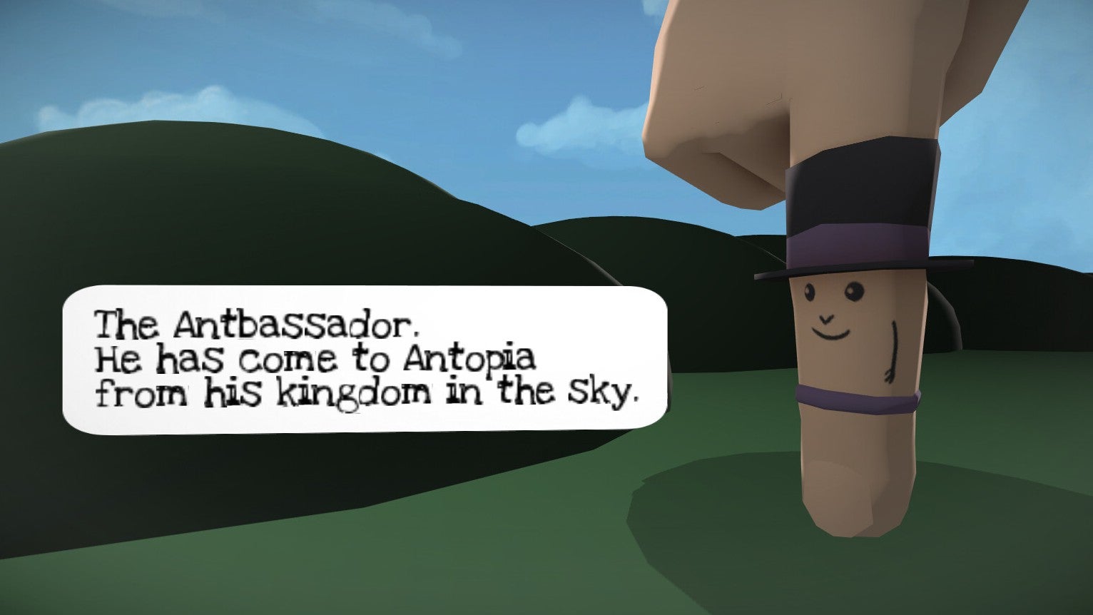 I will start with Antbassador, seeing as this game drew my eye so much I included it in the headline. In Antbassador, players are the one and only Antbassador. That is to say, they are a human finger with a top hat, and one that has to help the citizens of Antopia (a colony of ants) without causing an international incident.