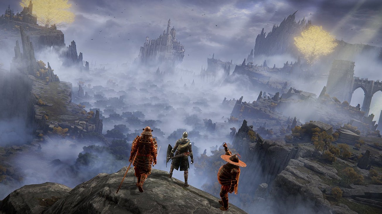 It’s disconcerting, then, that at the start of Elden Ring you’re met with a gaping hole. A ghostly figure sits watch, while your eye is drawn up to a friendly door – clearly the right way to go.